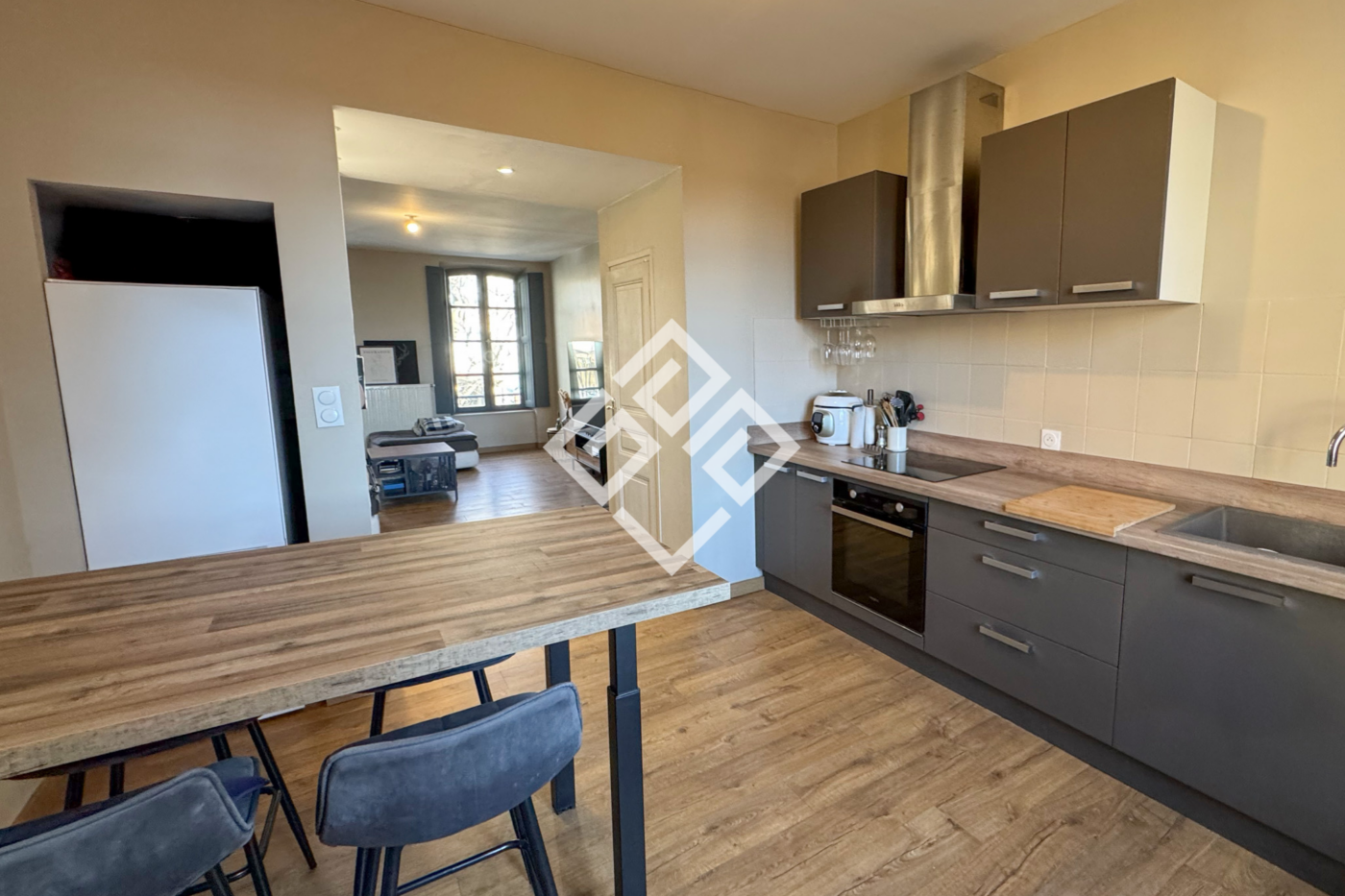 La pièce de vie de 34 m2, intégrant une cuisine entièrement aménagée et équipée, séduit par son esprit moderne et convivial.