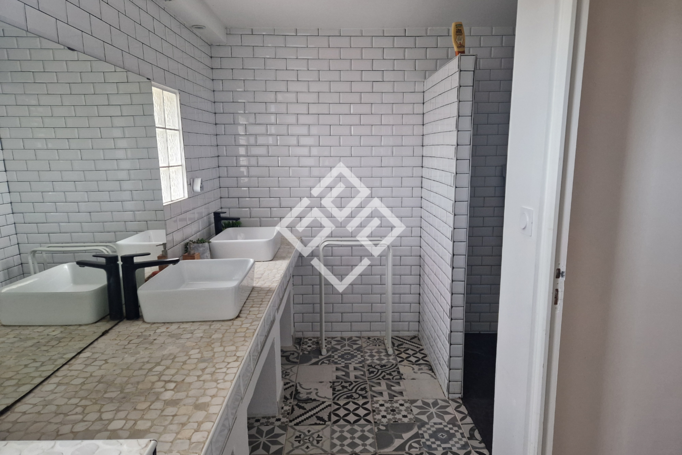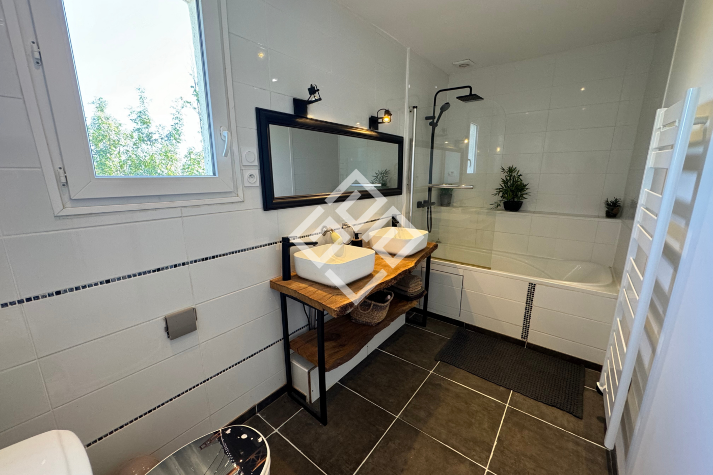 A l'étage, 3 chambres respectivement de 15.02m2, 12.58 m2, 11.80m2 et une 4ème chambre mansardé de près de 35m2 sont accompagnées d'une salle de bain avec double vasque de 7.35m2.