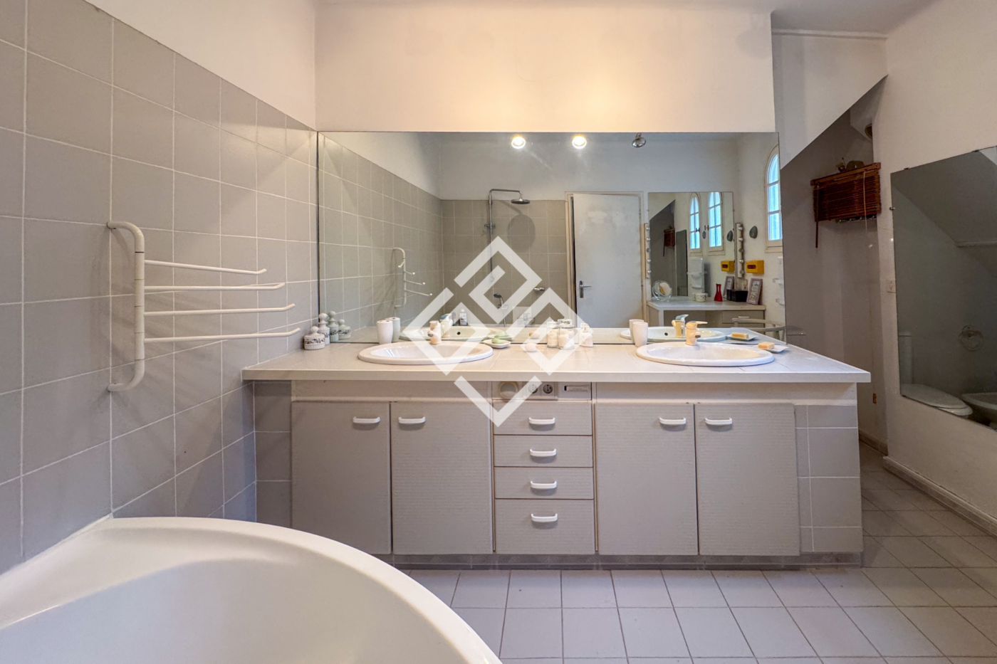 À l'extérieur, la propriété se prolonge par un superbe jardin arboré et intimiste, agrémenté d'une agréable piscine bordée de terrasses en terre cuite, idéal pour profiter des beaux jours en toute tranquillité. Entourée d'une végétation luxuriante et d'arbres matures, la maison offre un cadre de vie privilégié, propice à la détente et aux moments de convivialité.
