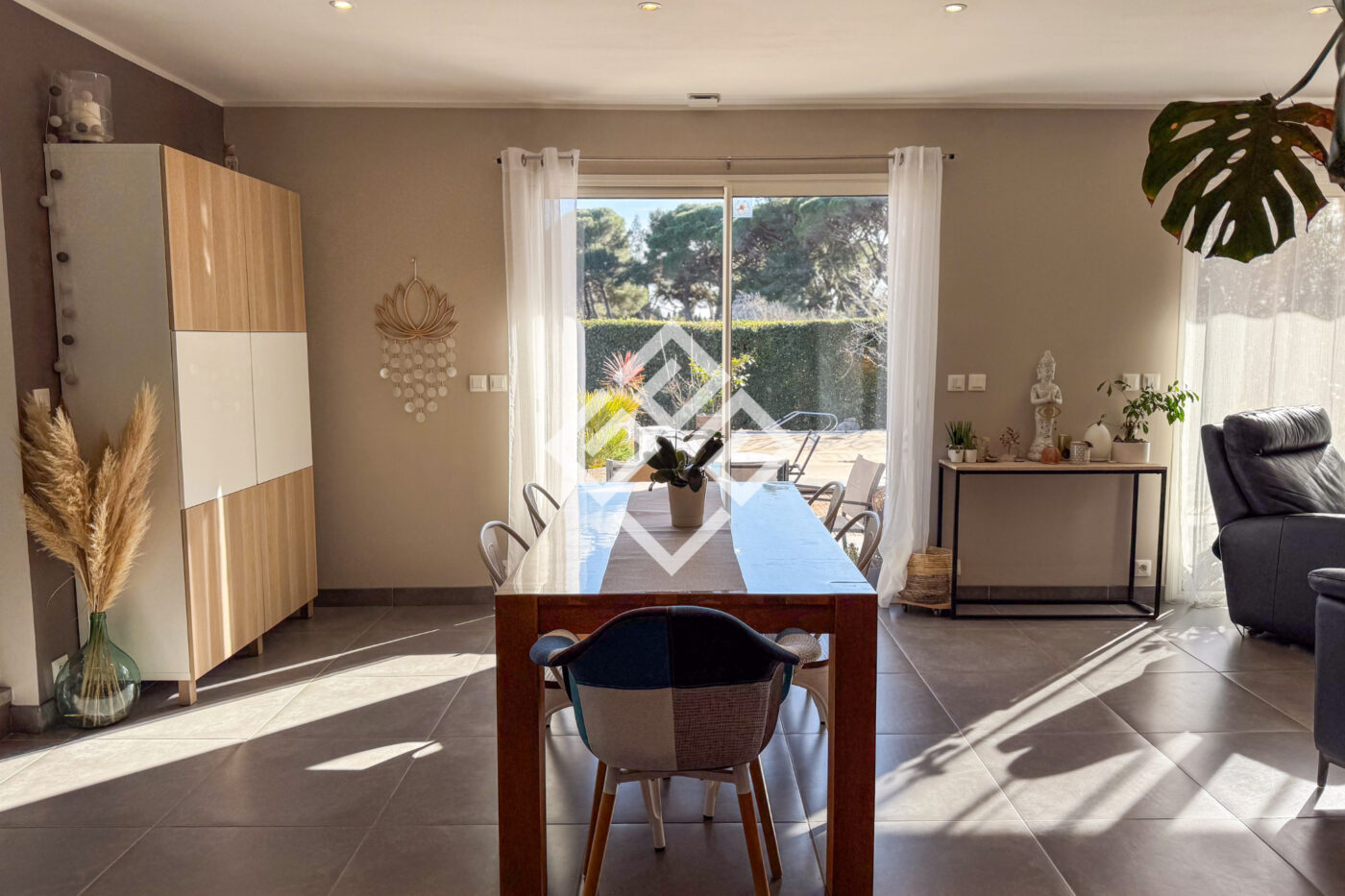 Face au Canal du Midi, dans un environnement préservé sans aucun vis-à-vis, cette maison familiale de 115 m2 offre un cadre de vie rare, entre sérénité et confort moderne. Ici, chaque espace a été pensé pour profiter pleinement de la lumière, du jardin et de la vue dégagée. Dès l'entrée, le rez-de-chaussée dévoile une pièce de vie conviviale où salon et séjour s'ouvrent naturellement sur une cuisine équipée. L'ensemble forme un espace fluide et chaleureux, idéal pour partager des moments en famille ou entre amis, avec un lien direct vers l'extérieur. Une suite parentale en rez-de-chaussée apporte un véritable confort de plain-pied et une indépendance appréciable. Un grand cellier complète cet espace et communique avec un vaste garage, facilitant le stationnement et le rangement au quotidien. À l'étage, trois chambres de belles dimensions composent un espace nuit bien distinct, propice au calme. La salle de bain, équipée d'une baignoire d'angle et d'une douche à l'italienne, offre un confort complet. Deux WC indépendants, un à chaque niveau, renforcent la fonctionnalité de l'ensemble. À l'extérieur, le terrain arboré de 501 m2 prolonge harmonieusement les espaces de vie. La terrasse en bois invite aux repas d'été et aux soirées conviviales, tandis que la piscine devient le coeur des journées ensoleillées. L'ensemble est parfaitement entretenu : aucun travaux à prévoir. Les atouts de cette maison : vue dégagée sur le Canal du Midi, absence totale de vis-à-vis, suite parentale en rez-de-chaussée, piscine, terrasse bois, grand garage et place de parking intérieur. Un bien clé en main, idéal pour un projet immobilier à proximité de Narbonne, alliant confort, intimité et qualité de vie. À votre disposition : plans et vidéo.Taxe Foncière : 2400 EURLes informations sur les risques auxquels ce bien est exposé sont disponibles sur le site Géorisques : www.georisques.gouv.fr Implantée dans une commune à taille humaine offrant commerces, services et accès rapide aux grands axes, cette maison séduit par son équilibre entre tranquillité et praticité. Un cadre de vie recherché pour une résidence principale familiale ou un projet immobilier dans le secteur de Narbonne. Contactez-nous dès maintenant pour organiser une visite ou obtenir toutes les informations complémentaires.