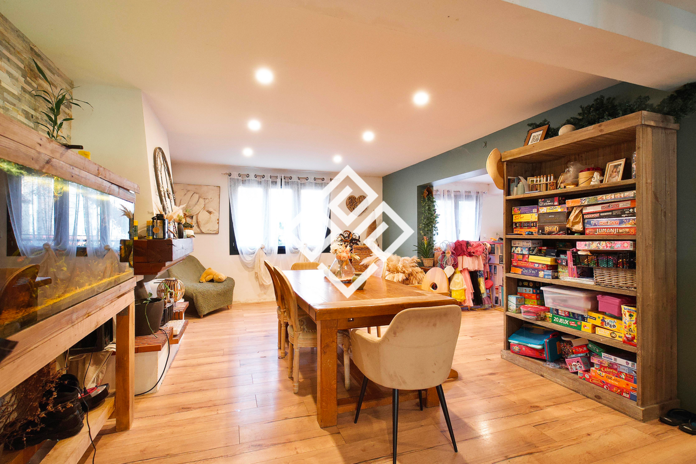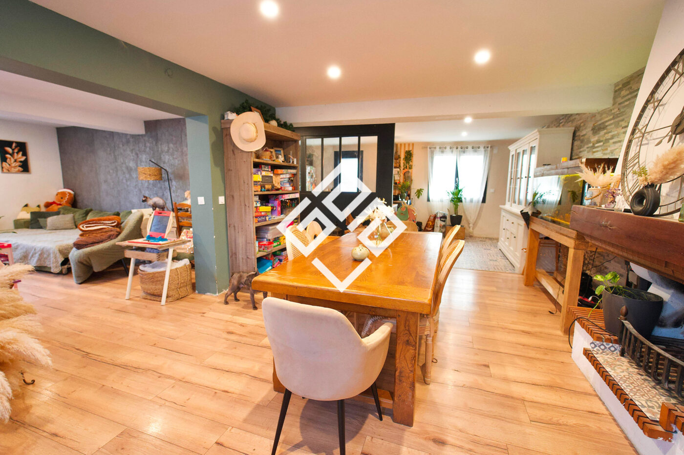 L'agencement fluide et les surfaces généreuses permettent de s'adapter à une grande famille ou à un projet de réorganisation intérieure. Atouts