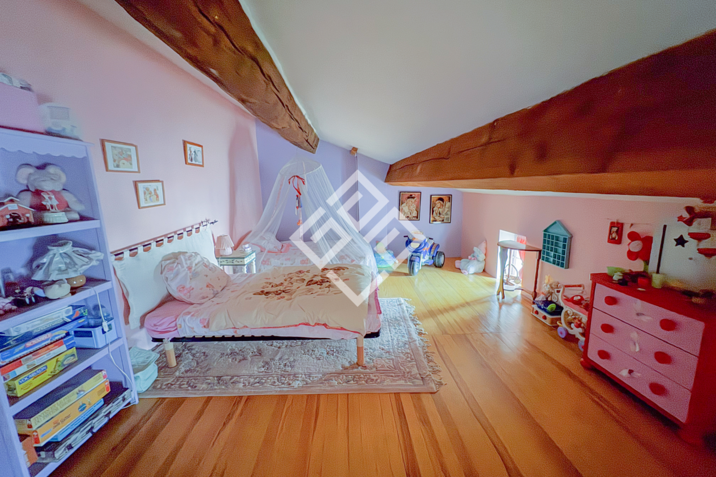 Le dernier étage propose deux très grands volumes actuellement aménagés en salle de jeux et en chambre supplémentaire, laissant libre cours à de nombreux projets : home cinéma, espace bien-être, atelier ou bureau.