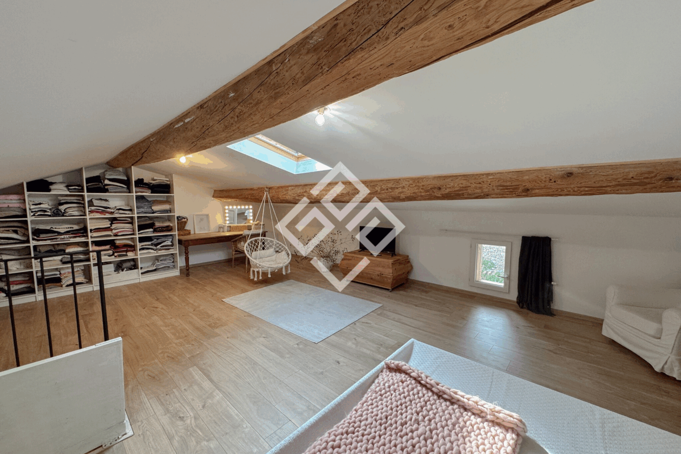 À l'étage, quatre belles chambres baignées de lumière vous attendent, ainsi qu'une salle de bain avec baignoire et double vasque. Les combles ont été aménagés en une vaste chambre de 44 m2, idéale pour une suite parentale, un espace télétravail ou une salle de loisirs.
