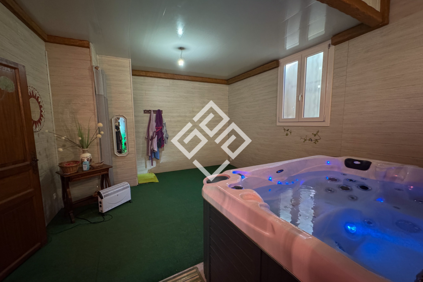 Le rez-de-chaussée : Détente et espace technique Dès l'entrée, l'atmosphère est donnée : un hall accueillant vous dirige vers un espace bien-être privatif équipé d'un jacuzzi, idéal pour vos moments de relaxation. Ce niveau se distingue également par un garage monumental de 140 m2, offrant un potentiel exceptionnel pour les collectionneurs, les bricoleurs ou tout projet d'aménagement complémentaire.