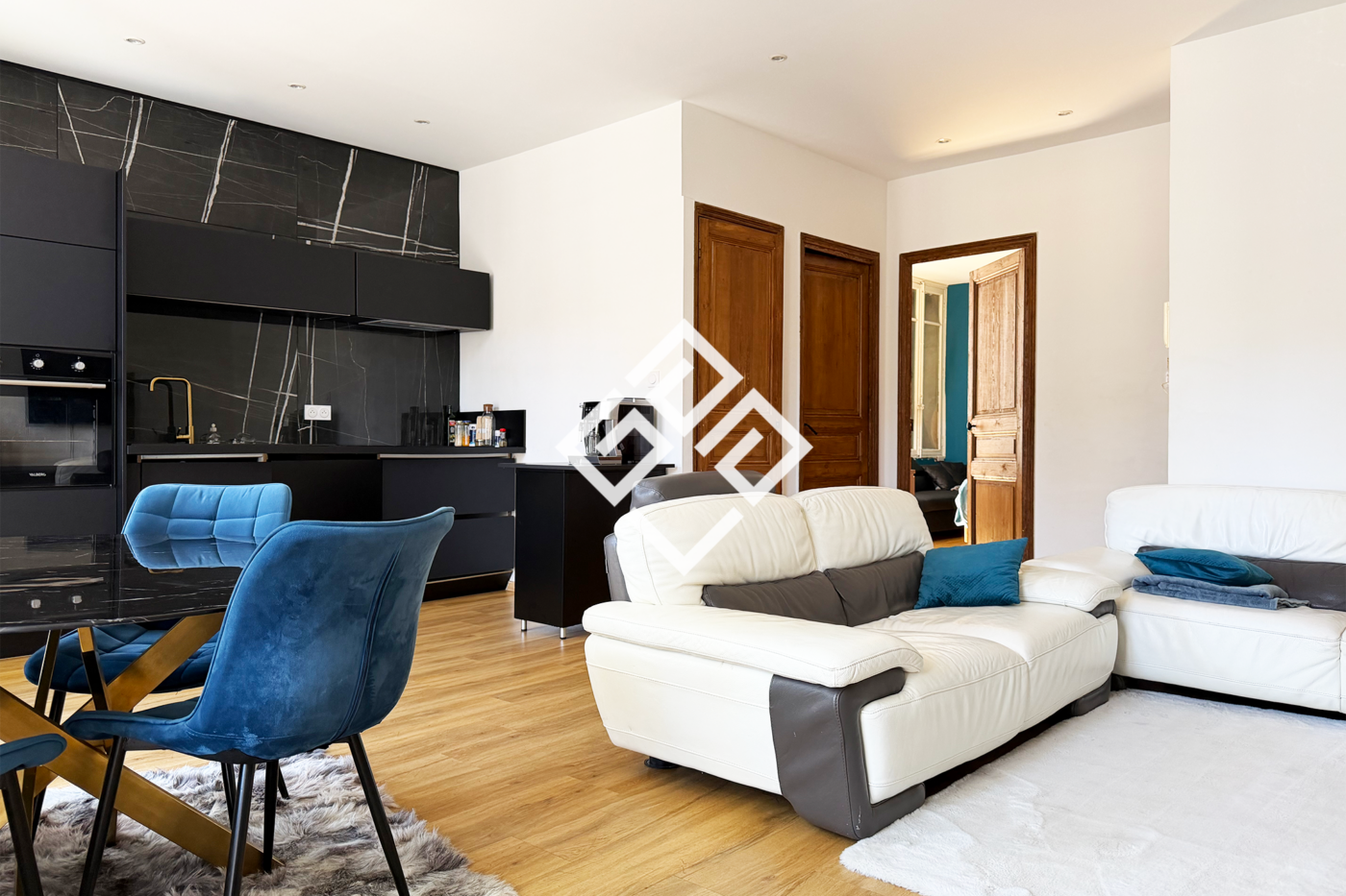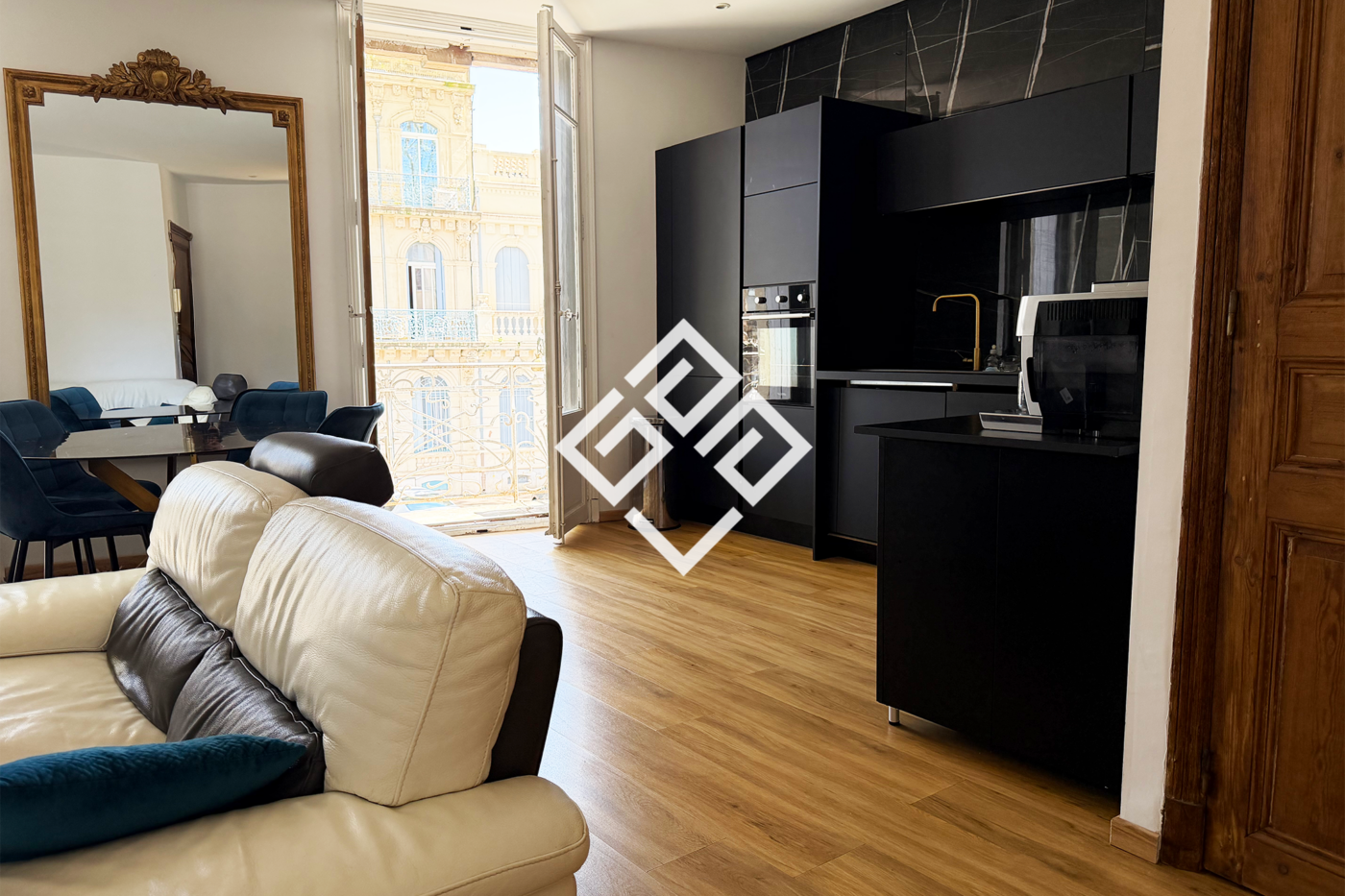 Appartement 1 Le coup de coeur Spacieux et entièrement rénové, il séduit dès le premier regard. Pièce à vivre lumineuse de 30 m2 avec cuisine américaine haut de gamme, grande chambre de 22 m2, salle de bain design, et un balcon donnant sur une belle avenue arborée. Prestations soignées, décoration contemporaine.