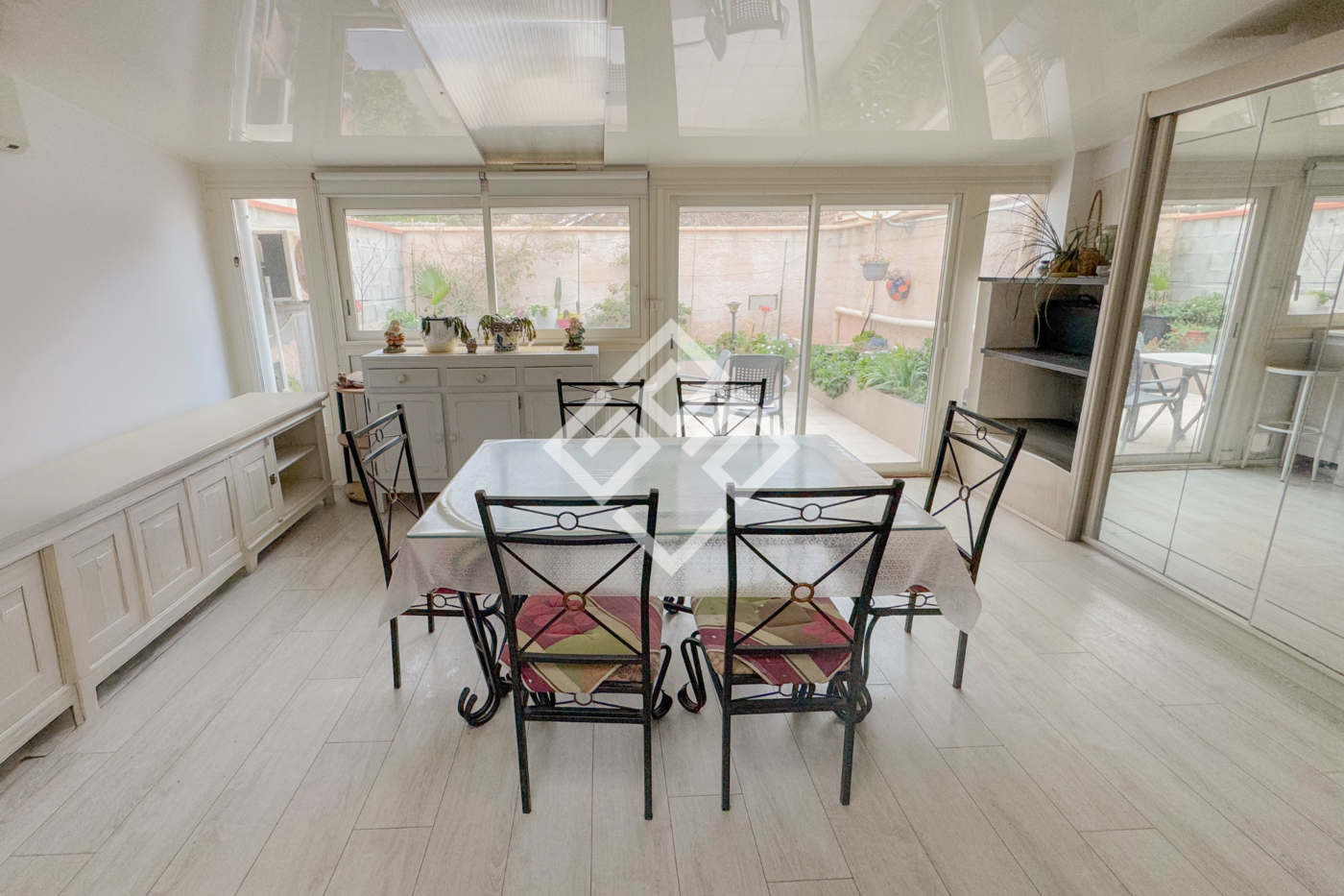 L'appartement est composé de divers éléments essentiels : Une entrée élégante mène à un espace de vie lumineux, comprenant un salon qui s'ouvre sur une terrasse orientée vers la mer. La salle à manger et la cuisine sont agrémentées d'une véranda, formant un ensemble total de 60 m2. La terrasse est embellie par des plantes méditerranéennes. La maison dispose également d'une chambre avec placard intégré (9,93 m2) et d'une salle d'eau (3,60 m2) équipée d'une douche et d'un lavabo, ainsi qu'un WC indépendant (1,54 m2). Un dégagement permet l'accès aux combles où se trouvent une chambre (15,73 m2), une pièce polyvalente (8,69 m2) pouvant servir de chambre supplémentaire, une salle d'eau (2,82 m2), et pour parfaire l'ensemble, une mezzanine de (13,37m2).