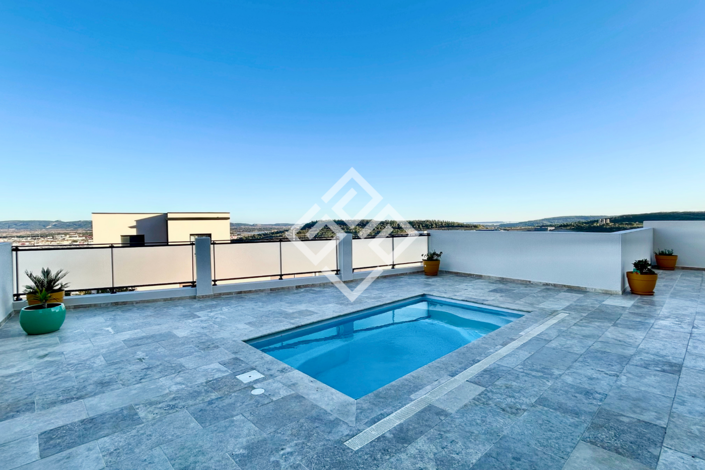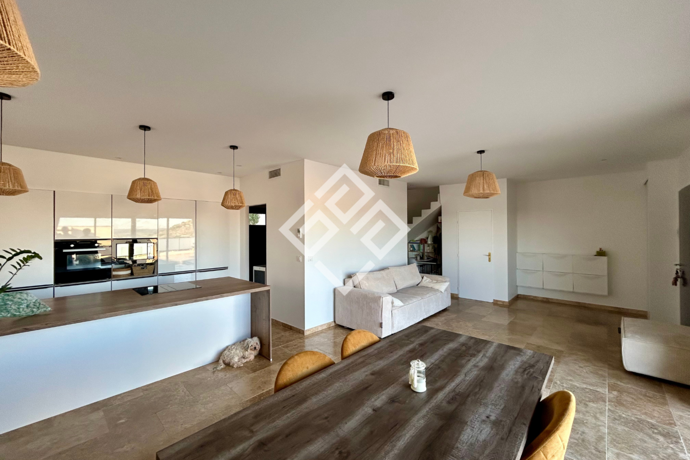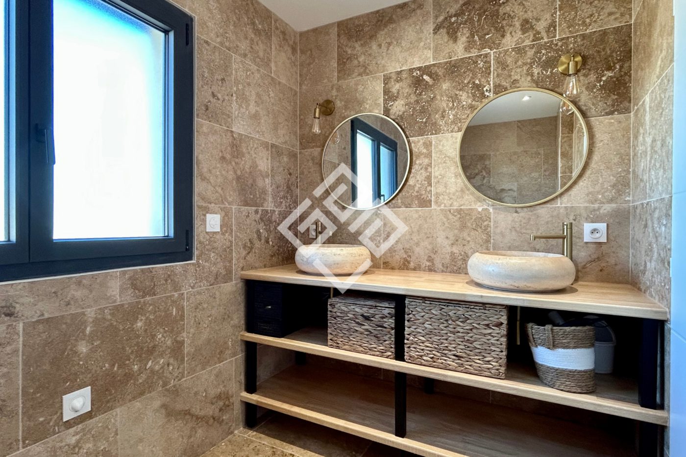 GALA IMMOBILIER a le plaisir de vous présenter cette superbe villa récente 4 faces, offrant des prestations de qualités et située dans un cadre privilégié, offrant une vue imprenable. Parfaitement conçue pour répondre aux besoins d'une famille, cette maison allie charme, fonctionnalité et confort moderne. Elle se compose : En rez-de-chaussée : L'accès à la maison se fait par un large escalier extérieur, qui mène à l'entrée. Vous serez accueillis par une grande pièce de vie dévoilant un intérieur lumineux et chaleureux grâce à sa large baie vitrée, donnant accès à la terrasse et la piscine. Un cuisine ouverte parfaitement équipée pour préparer de bons plats et un cellier, un placard avec l'espace machine à laver, un wc séparé et un espace bureau. À l'étage : Un palier servant une salle de bain moderne avec des finitions soignées comprenant une baignoire et double vasque. Un wc séparé, deux chambres avec placards aménagés et une suite parentale avec dressing et salle d'eau qui offre une jolie vue dégagée. L'extérieur, dispose d'une grande terrasse avec piscine offrant une vue panoramique, qui apportera une touche d'élégance à vos journées estivales les plus agréables. Sur les côtés de la villa, des espaces aménagé pour recevoir vos convives afin de partager des repas en plein air. Un garage enterré de 26 m2 avec la place pour deux voitures devant le portail du garage. Prenez contact avec notre équipe et venez découvrir sans attendre ce bien unique qui saura vous séduire par ses nombreux atouts. Un coup de coeur assuré !