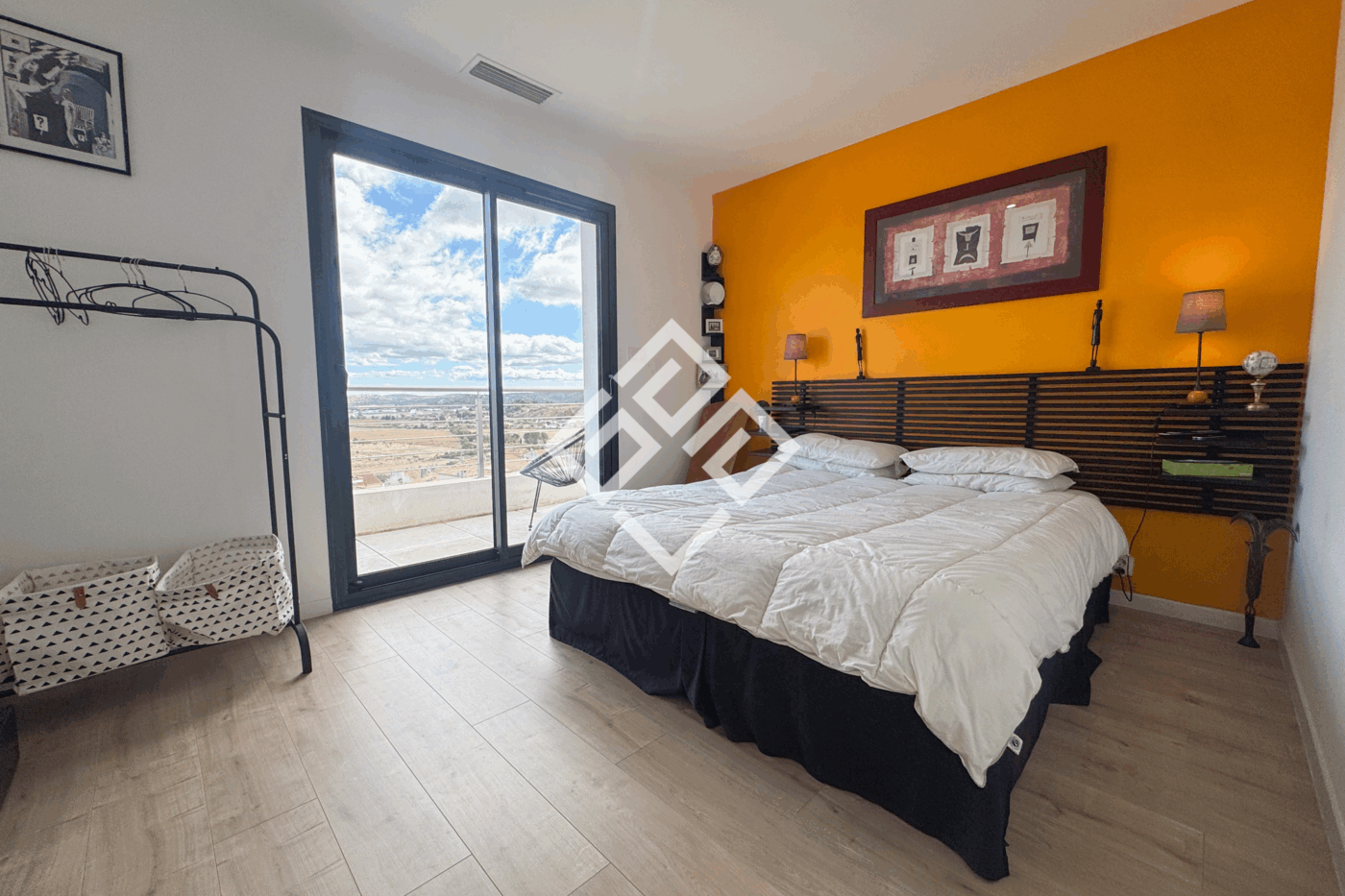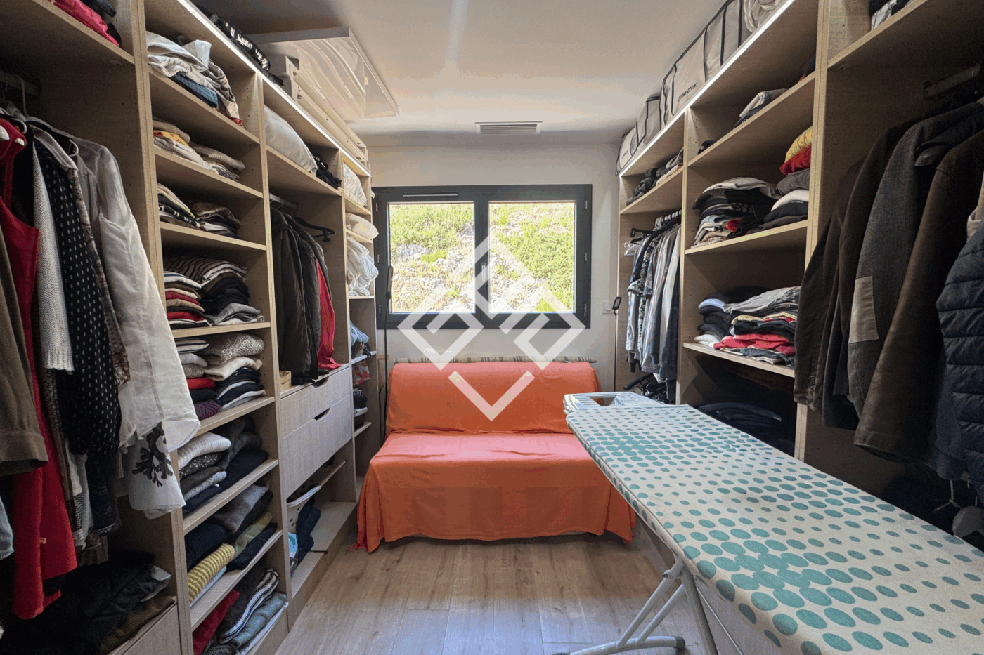 La suite parentale du rez-de-chaussée (24,05 m2) est un cocon intime. Le dressing et la salle d'eau vienne compléter la pièce et la baie vitrée ouvre sur le jardin et une vue à coupé le souffle comme une invitation au calme, tournée plein sud-est.