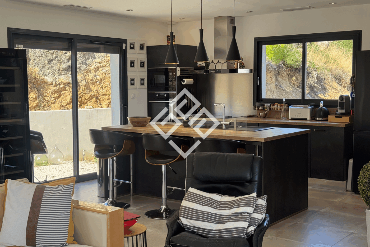 GALA IMMOBILIER a le plaisir de vous présenter une maison qui respire la lumière et la sérénité. Ici, les collines se dessinent à travers chaque baie vitrée et l'horizon accompagne le quotidien. Cette villa moderne invite autant à la convivialité qu'à l'intimité, pour une vie douce et inspirante. Ele ce trouve à 10 min du centre ville de Narbonne.