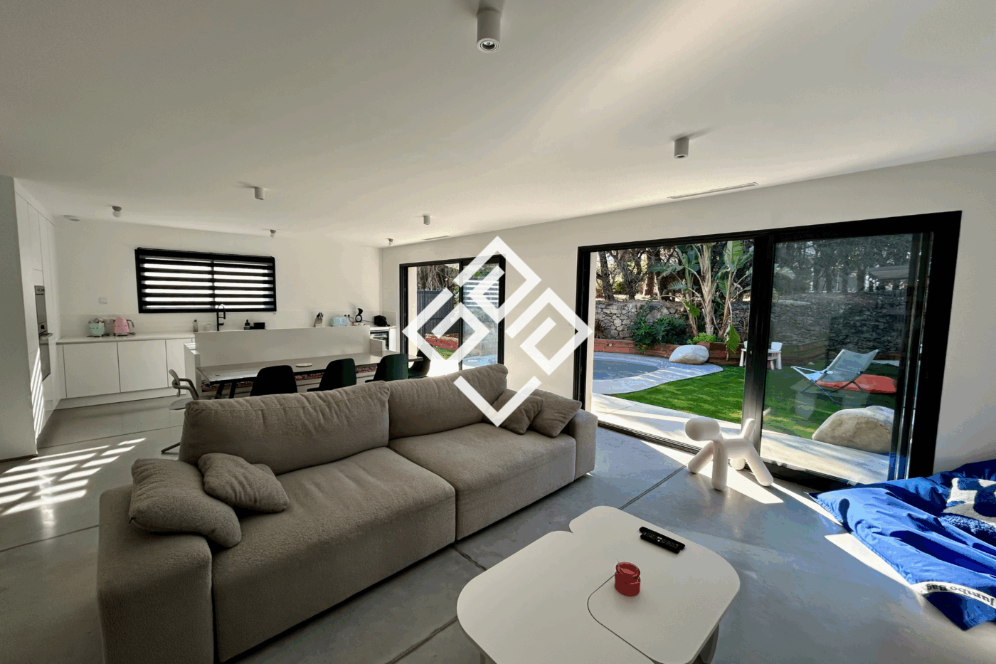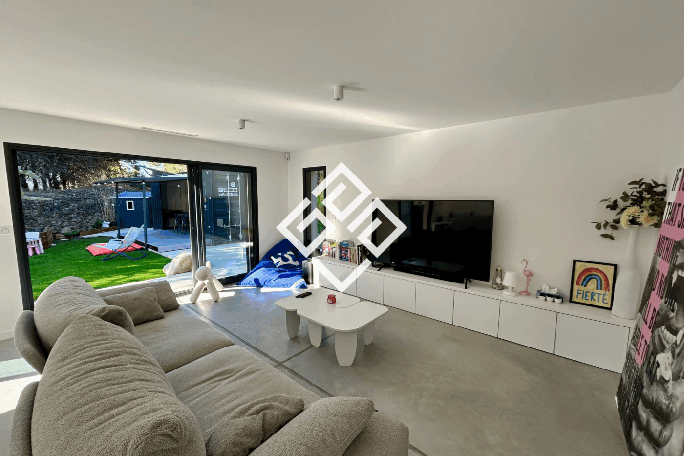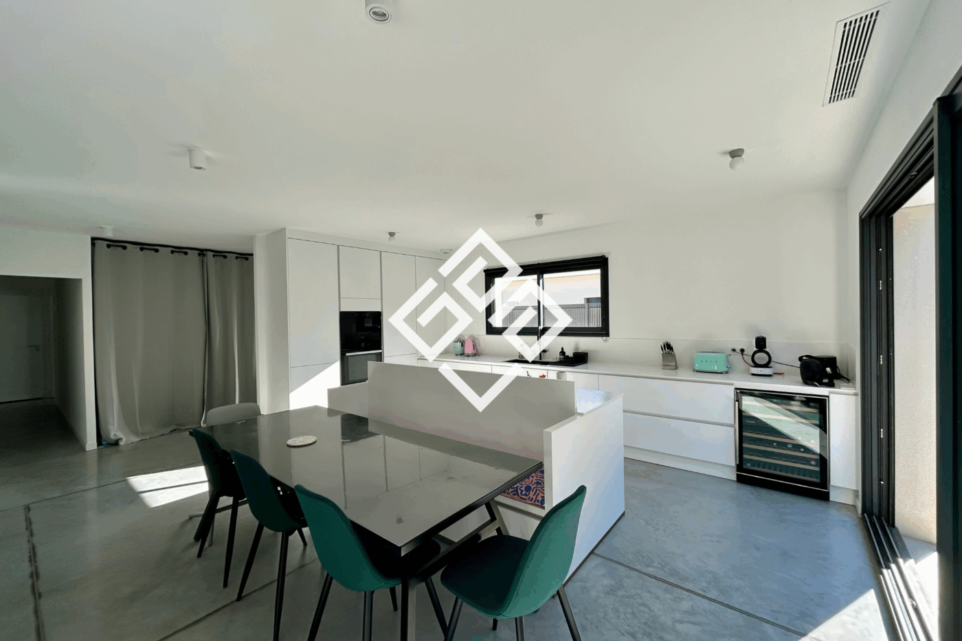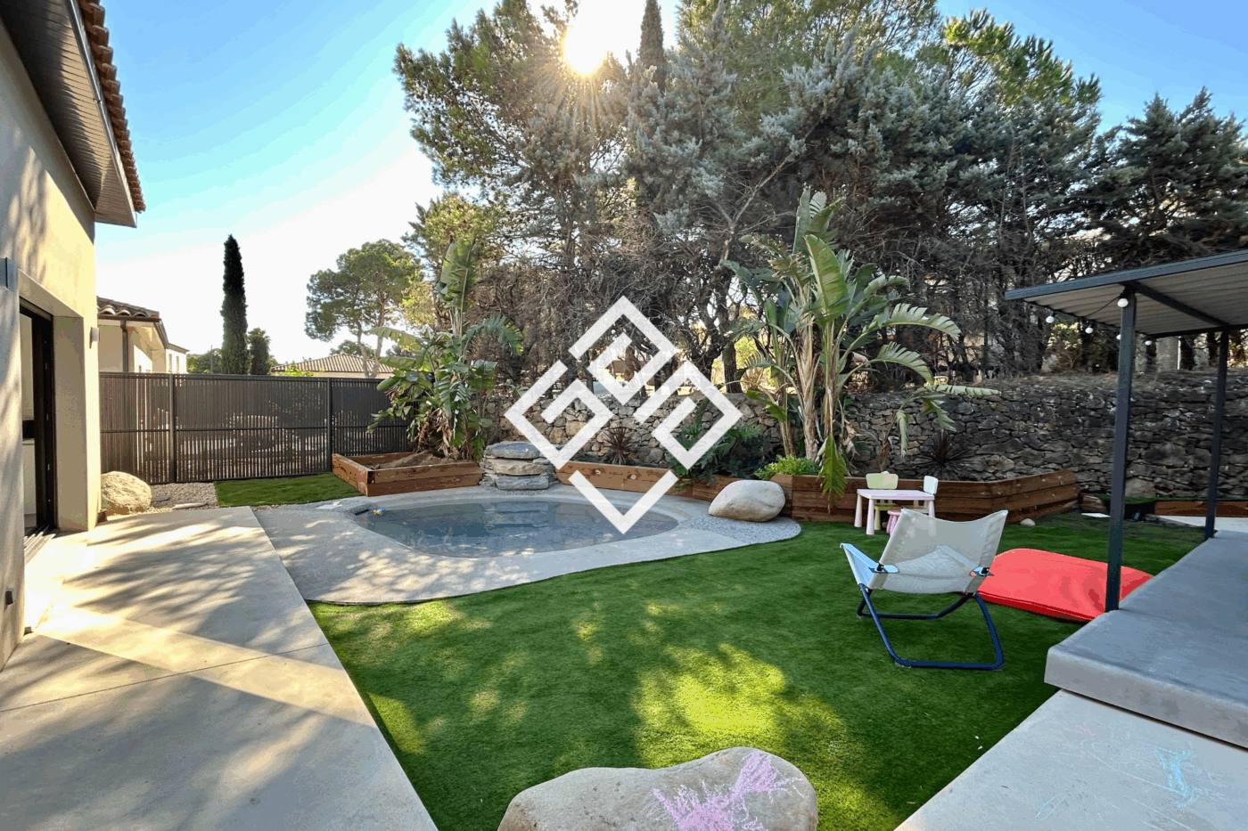 En exclusivité chez GALA IMMOBILIER : découvrez cette magnifique villa contemporaine de plain-pied 115 m2 (construction 2024), nichée au coeur d'un écrin de verdure soigneusement aménagé. Conçue pour allier esthétique moderne, confort et sérénité, elle offre un cadre de vie d'exception. Ses lignes épurées, ses volumes lumineux et ses larges baies vitrées ouvrent naturellement l'espace de vie sur un extérieur pensé comme une véritable oasis privée. La piscine style lagon, son jacuzzi intégré et sa cascade, s'intègrent parfaitement dans un jardin paysager et arboré, transformant cette demeure en un véritable refuge de rêve et de tranquillité Un bien rare où modernité et nature s'harmonisent parfaitement, à seulement 10 minutes de Narbonne. La villa est composée : Entrée avec placards intégrés (5,86 m2), Séjour spacieux et lumineux (38,09 m2) ouvert sur une cuisine moderne entièrement équipée, couloir (4,46 m2) desservant : 2 chambres confortables (11,09 m2 chacune), 1 salle de bain élégante (7,78 m2) avec baignoire, douche à l'italienne, double vasque et WC. Suite parentale (18,59 m2) avec dressing (5,04 m2) et salle d'eau privative (2,77 m2), buanderie fonctionnelle (4,12 m2) Un garage spacieux de 28,39 m2 vient compléter ce bien. La partie extérieure : sur une parcelle de 577 m 2 une piscine lagon avec jacuzzi au sel. Un container (pool house) Ses atouts : prestations haut de gamme, construction 2024 , extérieurs pensés pour la détente et la convivialité, climatisation réversible (gainable), cuisine équipée, alarme. Informations complémentaires : localisation idéale, toutes les commodités à proximité: école, commerces, traiteur, supérette.