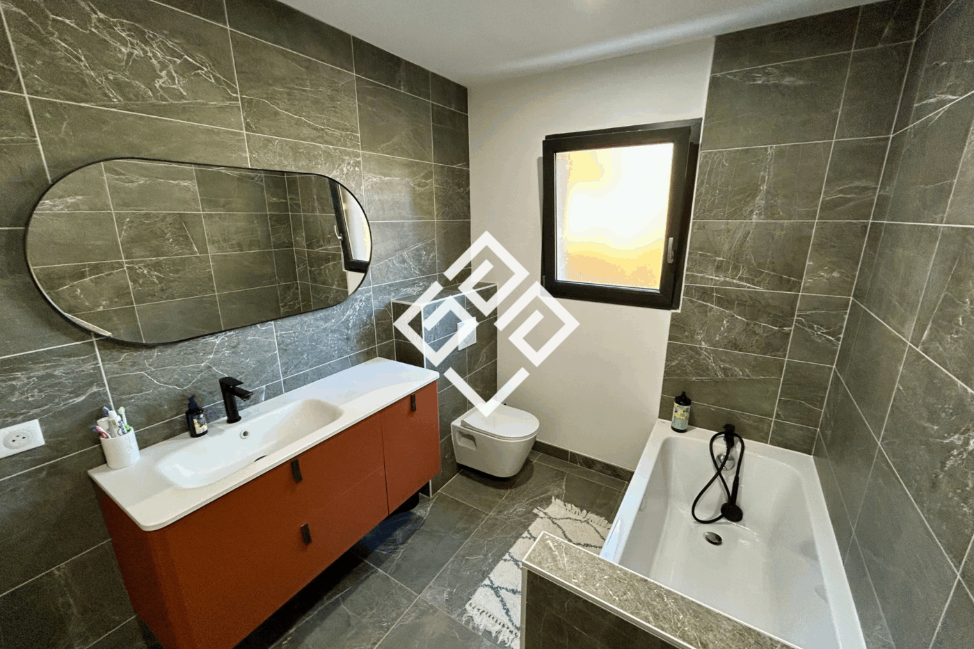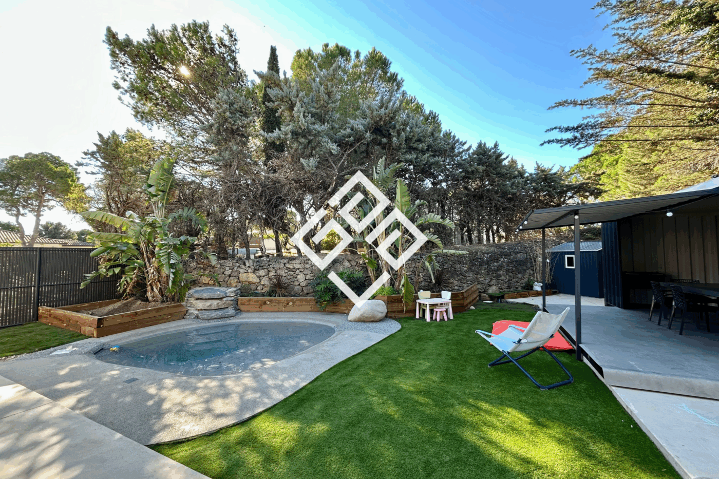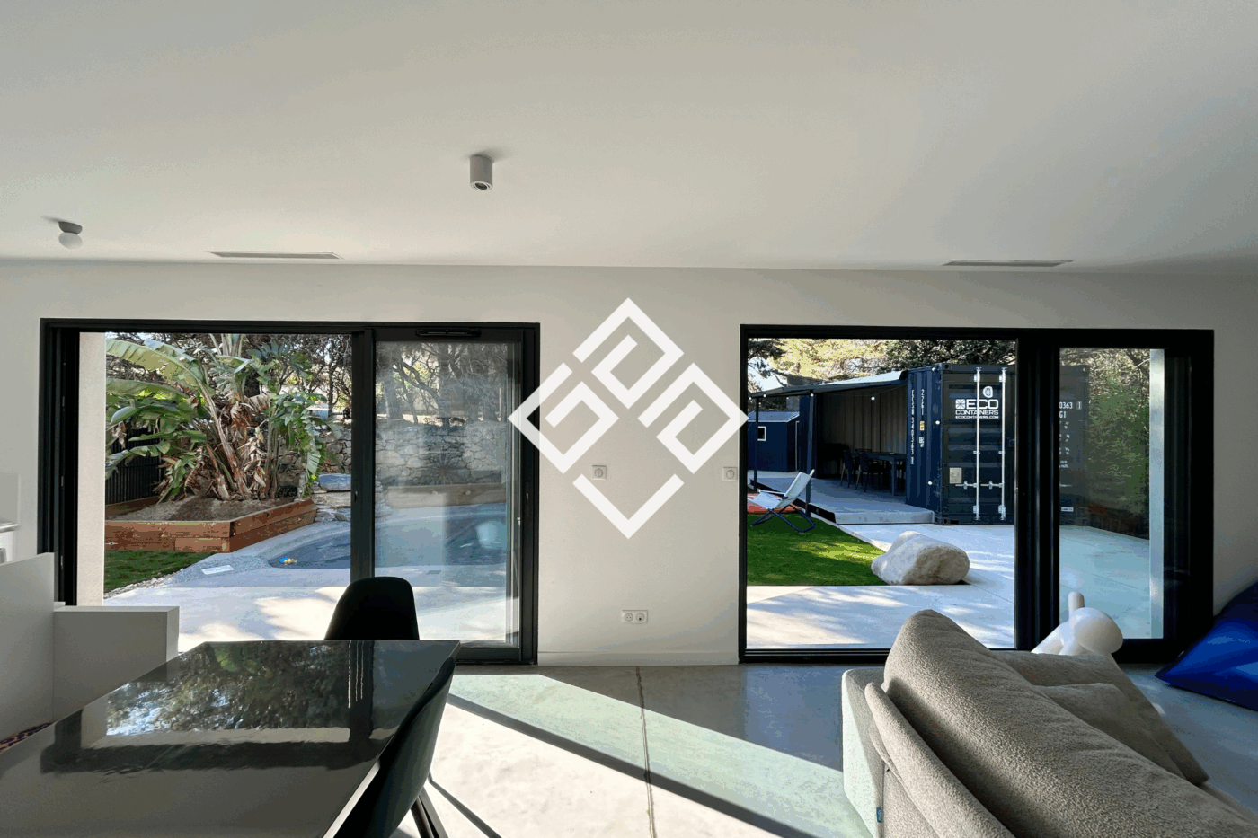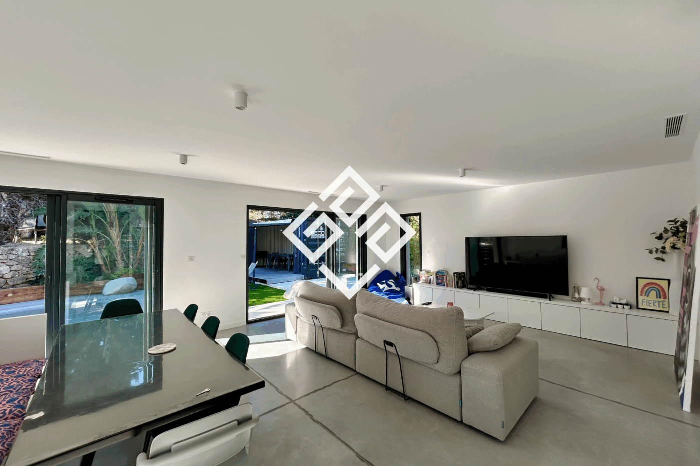 En exclusivité chez GALA IMMOBILIER : découvrez cette magnifique villa contemporaine de plain-pied 115 m2 (construction 2024), nichée au coeur d'un écrin de verdure soigneusement aménagé. Conçue pour allier esthétique moderne, confort et sérénité, elle offre un cadre de vie d'exception. Ses lignes épurées, ses volumes lumineux et ses larges baies vitrées ouvrent naturellement l'espace de vie sur un extérieur pensé comme une véritable oasis privée. La piscine style lagon, son jacuzzi intégré et sa cascade, s'intègrent parfaitement dans un jardin paysager et arboré, transformant cette demeure en un véritable refuge de rêve et de tranquillité Un bien rare où modernité et nature s'harmonisent parfaitement, à seulement 10 minutes de Narbonne. La villa est composée : Entrée avec placards intégrés (5,86 m2), Séjour spacieux et lumineux (38,09 m2) ouvert sur une cuisine moderne entièrement équipée, couloir (4,46 m2) desservant : 2 chambres confortables (11,09 m2 chacune), 1 salle de bain élégante (7,78 m2) avec baignoire, douche à l'italienne, double vasque et WC. Suite parentale (18,59 m2) avec dressing (5,04 m2) et salle d'eau privative (2,77 m2), buanderie fonctionnelle (4,12 m2) Un garage spacieux de 28,39 m2 vient compléter ce bien. La partie extérieure : sur une parcelle de 577 m 2 une piscine lagon avec jacuzzi au sel. Un container (pool house) Ses atouts : prestations haut de gamme, construction 2024 , extérieurs pensés pour la détente et la convivialité, climatisation réversible (gainable), cuisine équipée, alarme. Informations complémentaires : localisation idéale, toutes les commodités à proximité: école, commerces, traiteur, supérette.
