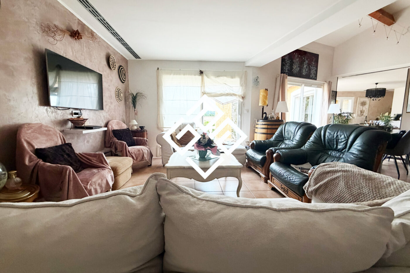 Dans un environnement paisible et recherché, cette villa de prestige offre un cadre de vie rare où volumes, lumière et confort s'harmonisent parfaitement. Pensée pour une vie familiale agréable comme pour recevoir, elle séduit dès les premiers instants par son atmosphère sereine et élégante. Développant environ 190 m2 habitables, la maison s'organise sur deux niveaux avec une distribution fluide et fonctionnelle. Les espaces de vie, généreux et baignés de lumière, invitent naturellement aux moments de partage. La cuisine, conviviale et ouverte, s'intègre parfaitement à l'ensemble et prolonge la sensation d'espace.Le rez-de-chaussée accueille trois chambres, chacune disposant de sa propre salle d'eau, garantissant confort, intimité et praticité au quotidien. À l'étage, les volumes complémentaires peuvent s'adapter aux besoins : suite supplémentaire, bureau ou espace détente. Implantée sur une parcelle d'environ 1 955 m2, la propriété s'ouvre sur un extérieur soigneusement aménagé. Le jardin accueille une grande piscine carrelée de 10 x 5 m, véritable coeur de vie en période estivale. Une dépendance indépendante permet de recevoir famille ou amis en toute autonomie, ajoutant un atout supplémentaire à ce bien rare. Les prestations sont à la hauteur du lieu : matériaux de qualité, très belle luminosité, aucun travaux à prévoir et panneaux photovoltaïques offrant une excellente rentabilité. Le calme environnant et la vue dégagée renforcent le sentiment de bien-être. Diagnostic en cour de réalisation À votre disposition : plans et vidéo.Taxe Foncière 1725 EURLes informations sur les risques auxquels ce bien est exposé sont disponibles sur le site Géorisques : www.georisques.gouv.fr La maison bénéficie d'un environnement résidentiel apprécié pour sa tranquillité et sa qualité de vie, tout en restant proche des commodités, des écoles et des principaux axes de circulation. Un emplacement idéal pour concilier sérénité et praticité au quotidien. Contactez-nous dès maintenant pour organiser une visite ou obtenir toutes les informations complémentaires.