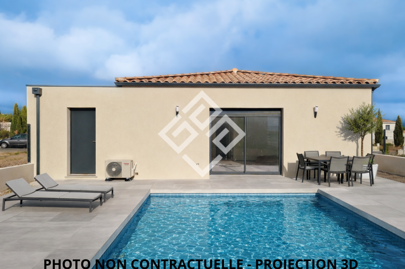 GALA IMMOBILIER vous présente cette maison neuve RE 2020 de plain-pied d'une superficie de 90 m2, édifiée sur une parcelle de 396 m2.